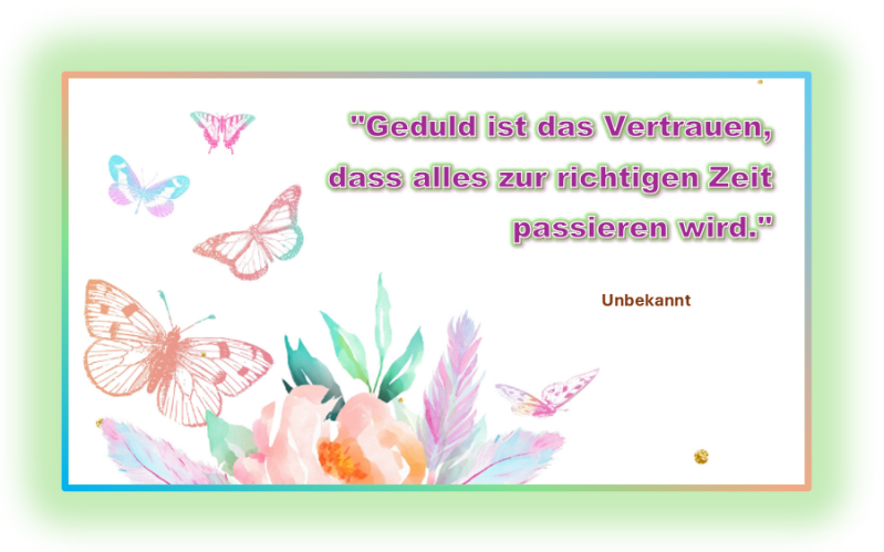 - "Geduld ist das Vertrauen, dass alles zur richtigen Zeit passieren wird." - Unbekannt